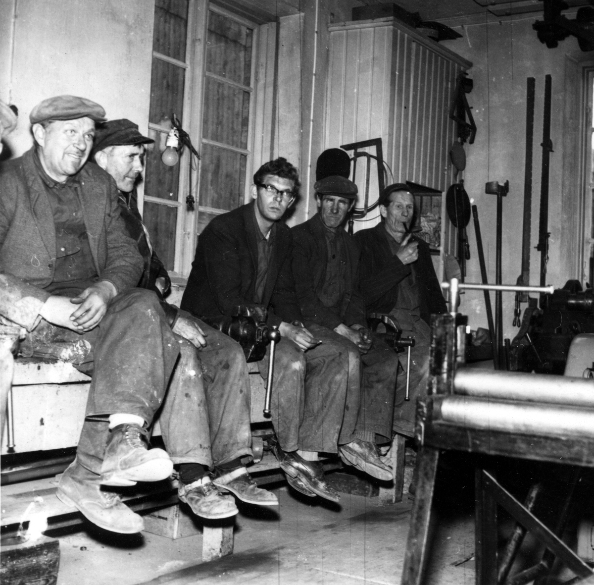 Anställda vid Falköpings stads gatukontor. "Stallis" Kaelsson Alf Johansson, Kurt "Dåsen" Gustavsson, Hilding Ljus, Klas "Långe Klas" Johansson.