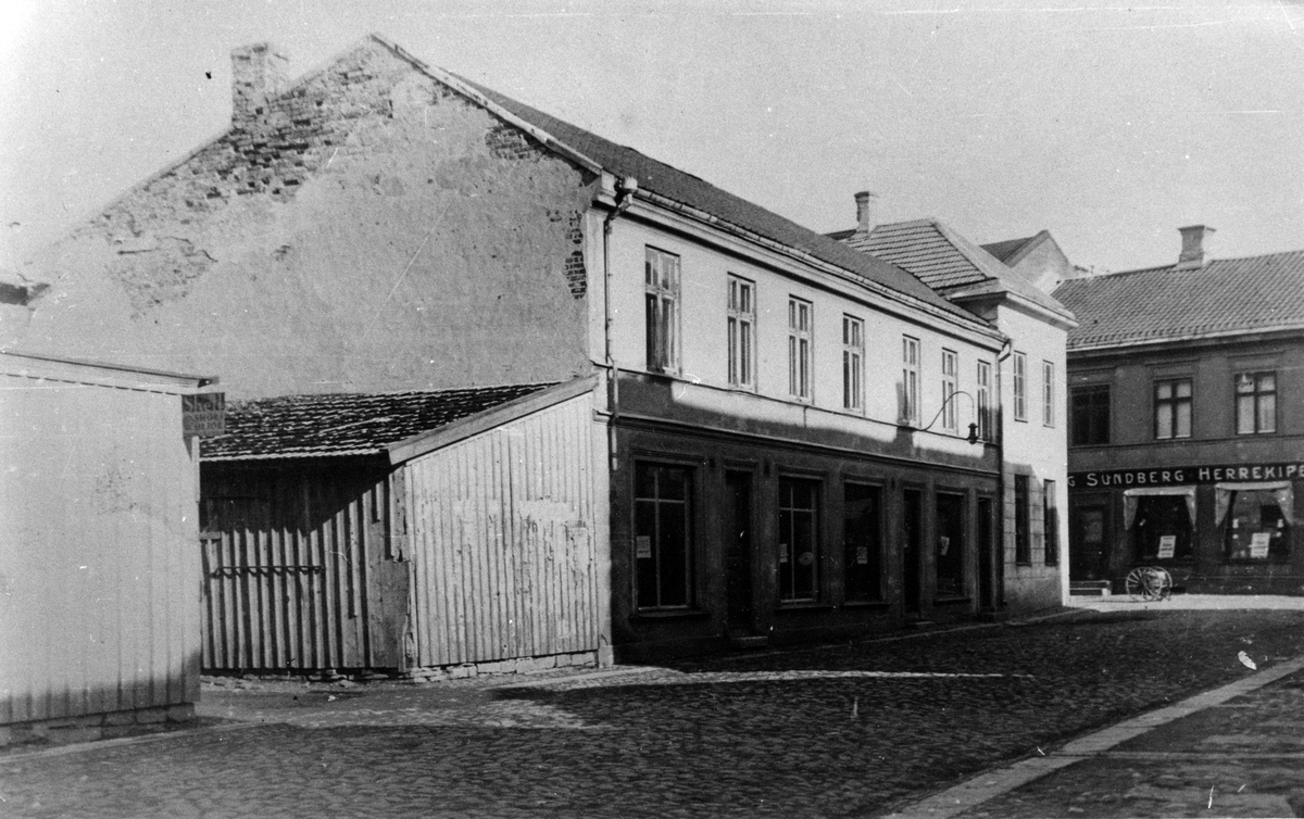 Hörnan Landbogatan - Storgatan, innan det revs för bankbygget.