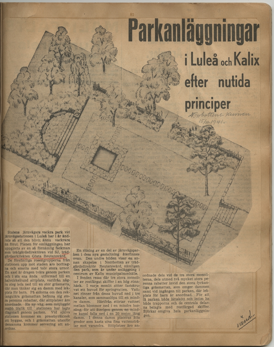 Västerbottens-Kuriren, 15-11-1941: Parkanläggningar i Luleå och Kalix efter nutida principer.