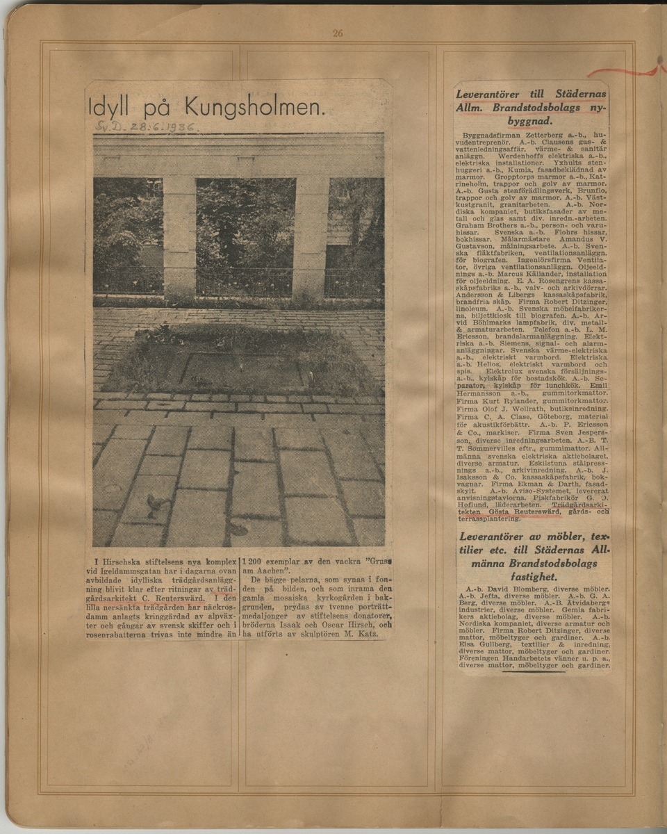 Tidningsklipp ur "Uppsatser om trädgårdar m.m. som på ett eller annat sätt beröra Gösta Reuterswärd 1931-1943".