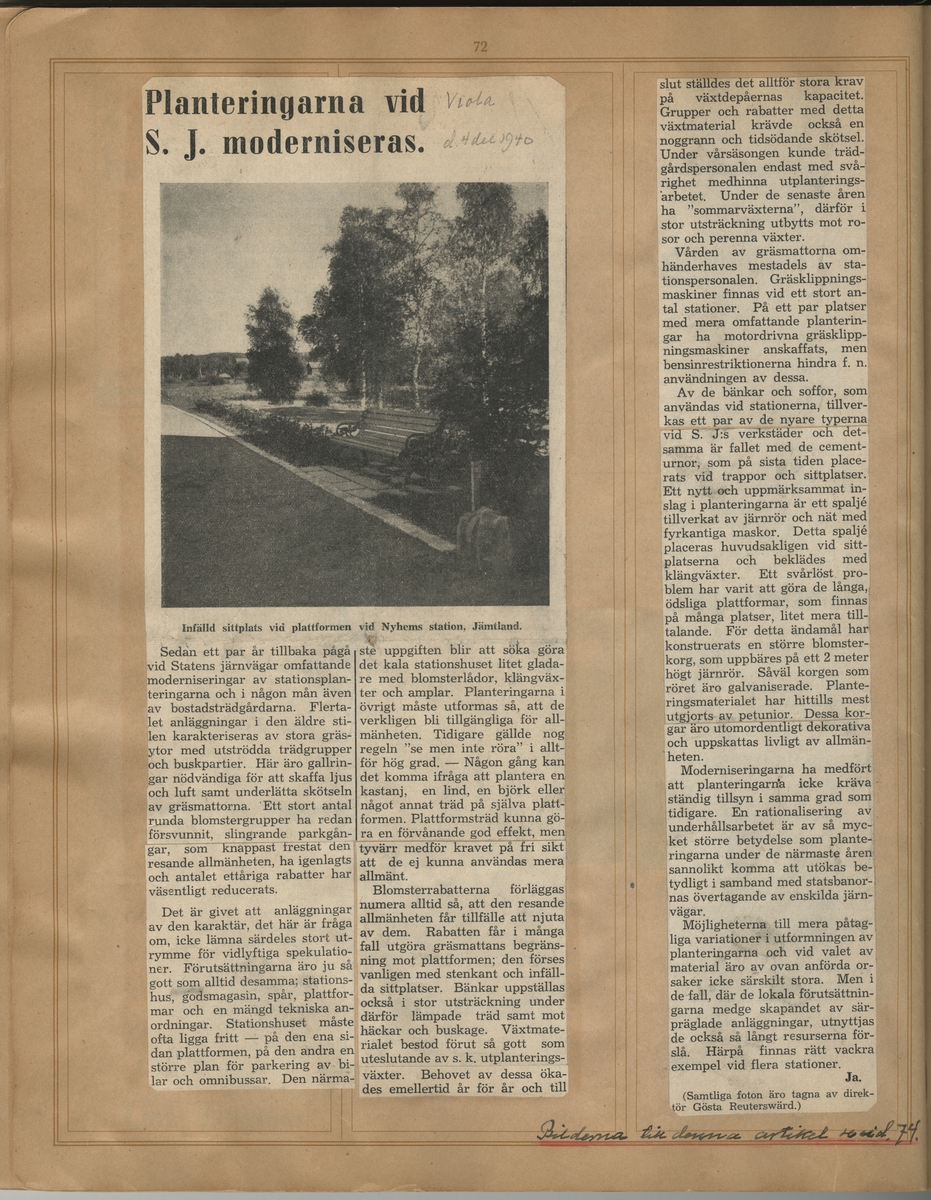 Viola, 04-12-1940: Planteringarna vid S.J. moderniseras.