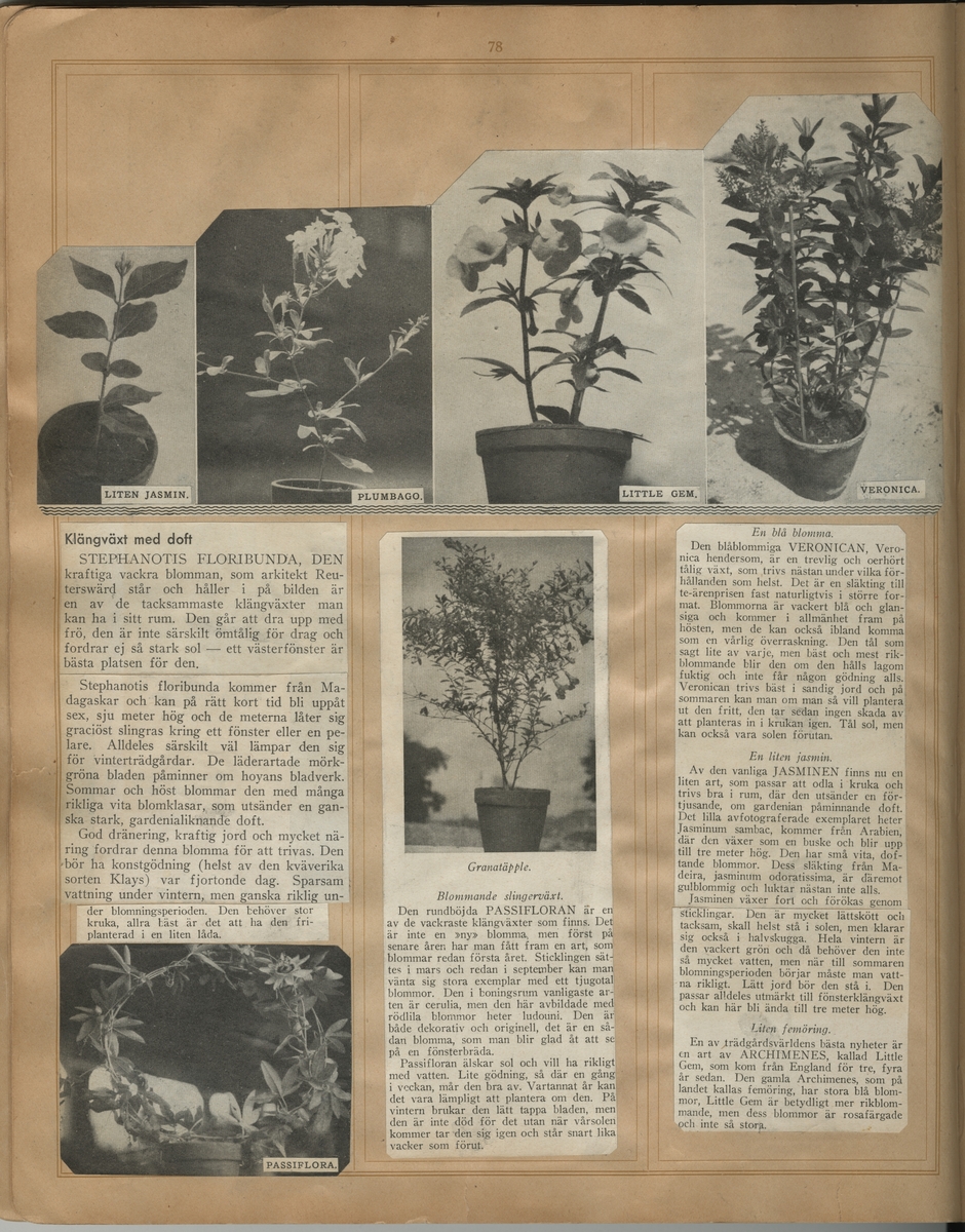 Tidningsklipp ur "Uppsatser om trädgårdar m.m. som på ett eller annat sätt beröra Gösta Reuterswärd 1931-1943".