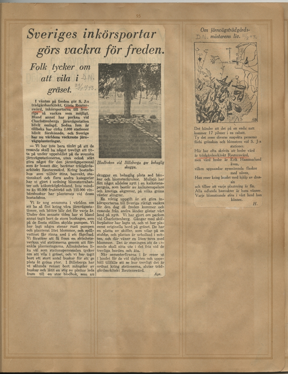 Tidningsklipp ur "Uppsatser om trädgårdar m.m. som på ett eller annat sätt beröra Gösta Reuterswärd 1931-1943".