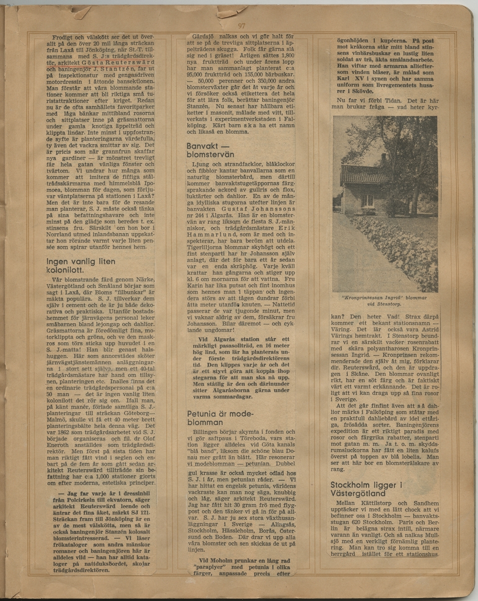 Fortsättning av föregående artikel: Stockholms Tidning, 12-08-1943: Våra blommande stationer turistattraktion.