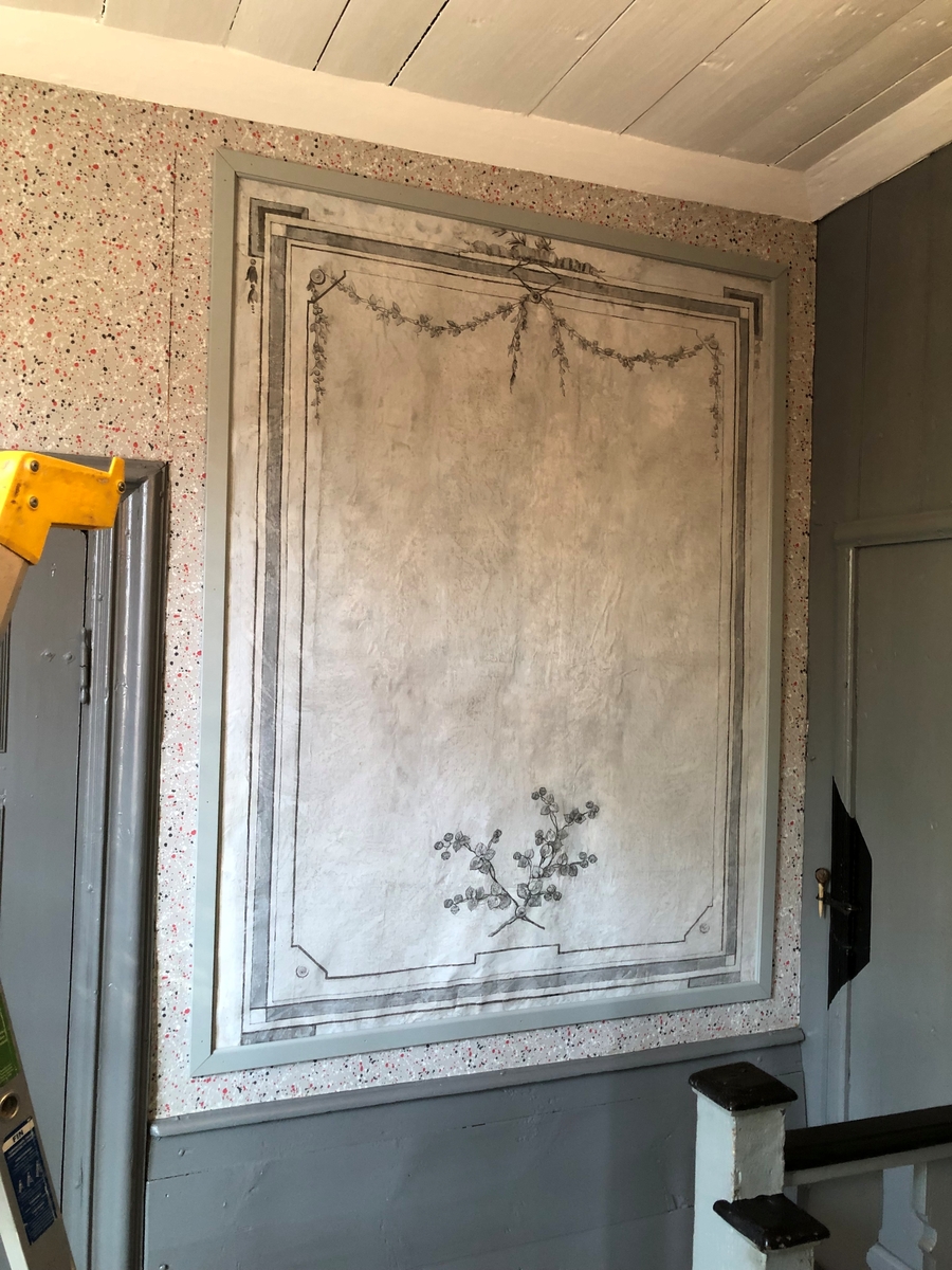 Källebacka säteri, tapeter. Del med fuktskador efter konservering.
