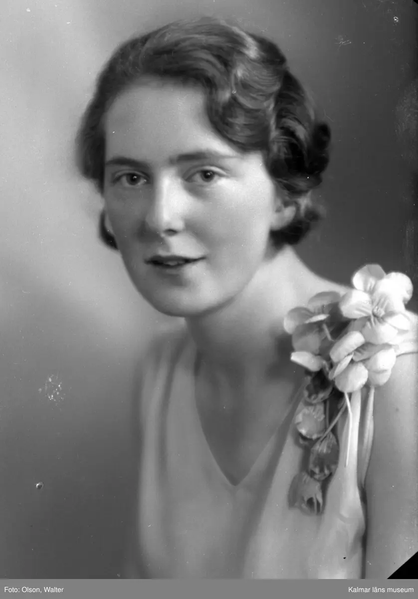 Ateljébild på en kvinna med dräkttillbehör. Enligt Walter Olsons journal är bilden beställd av fröken Å Forsmark.