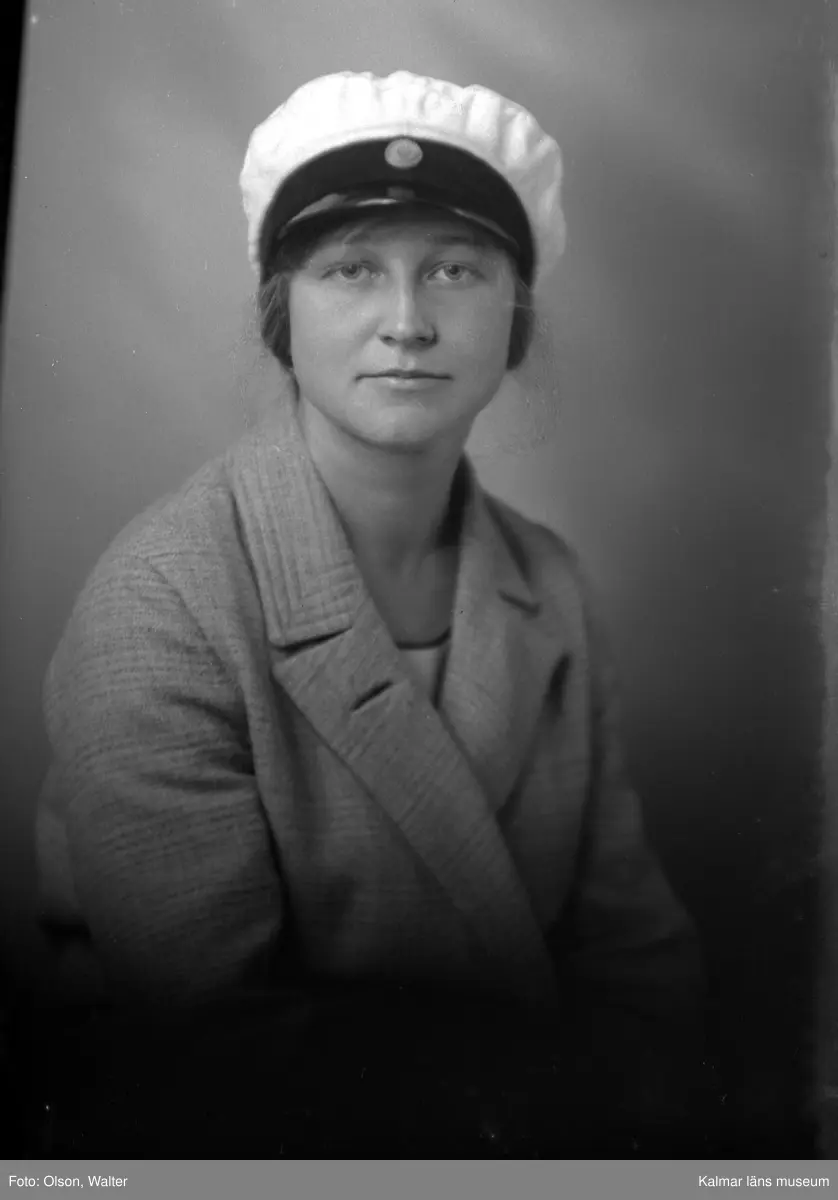 Ateljébild på en kvinna iförd studentmössa. Enligt Walter Olsons journal är bilden beställd av Louise Ehrnström.
