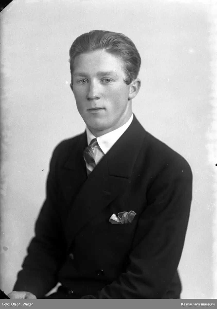 Ateljébild på en man i kostym. Beställare till bilden: Arvid Josefsson ifrån Kalmar.