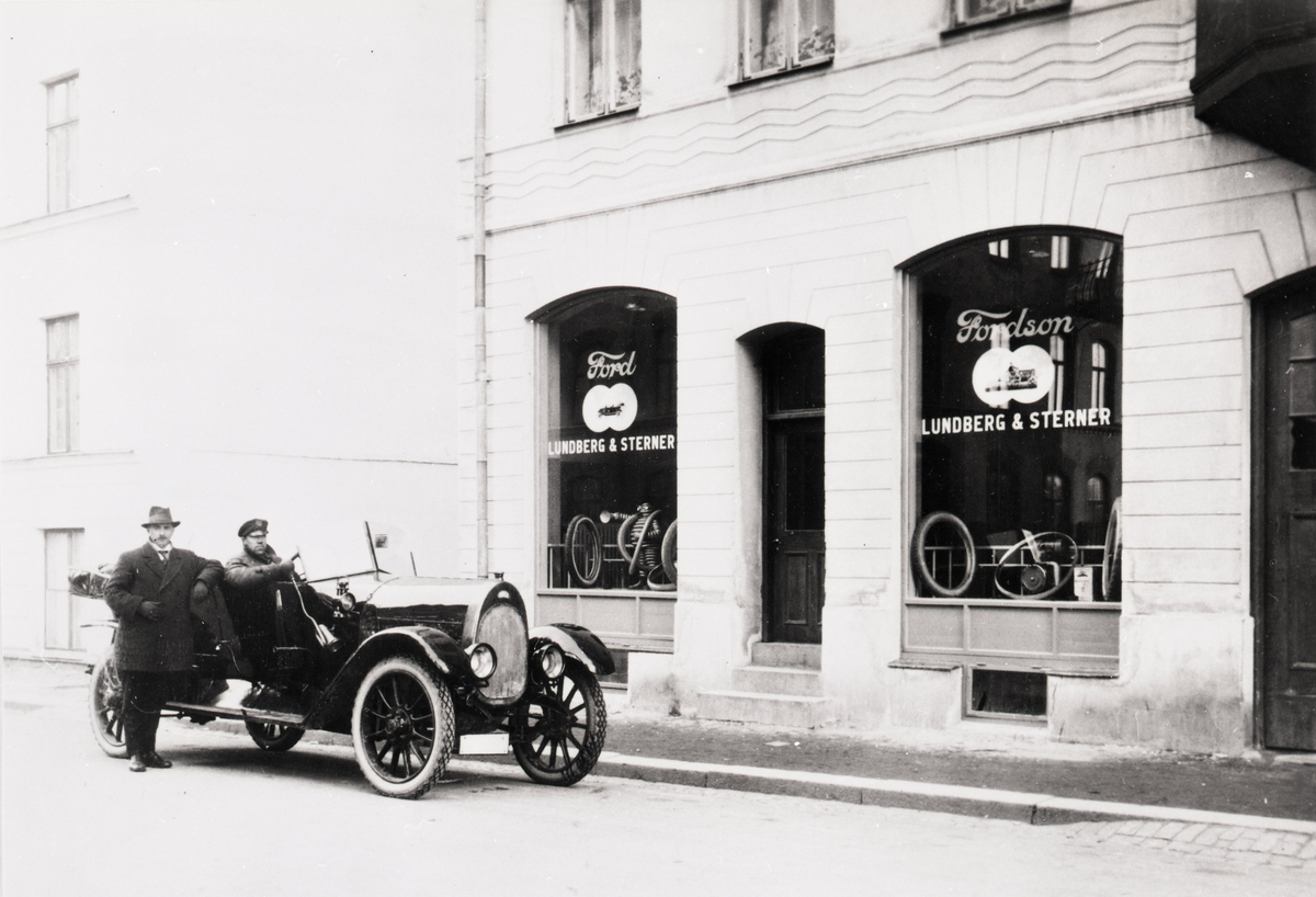Ford, Lundberg & Sterner, Frejagatan med en öppen landå utanför affären.