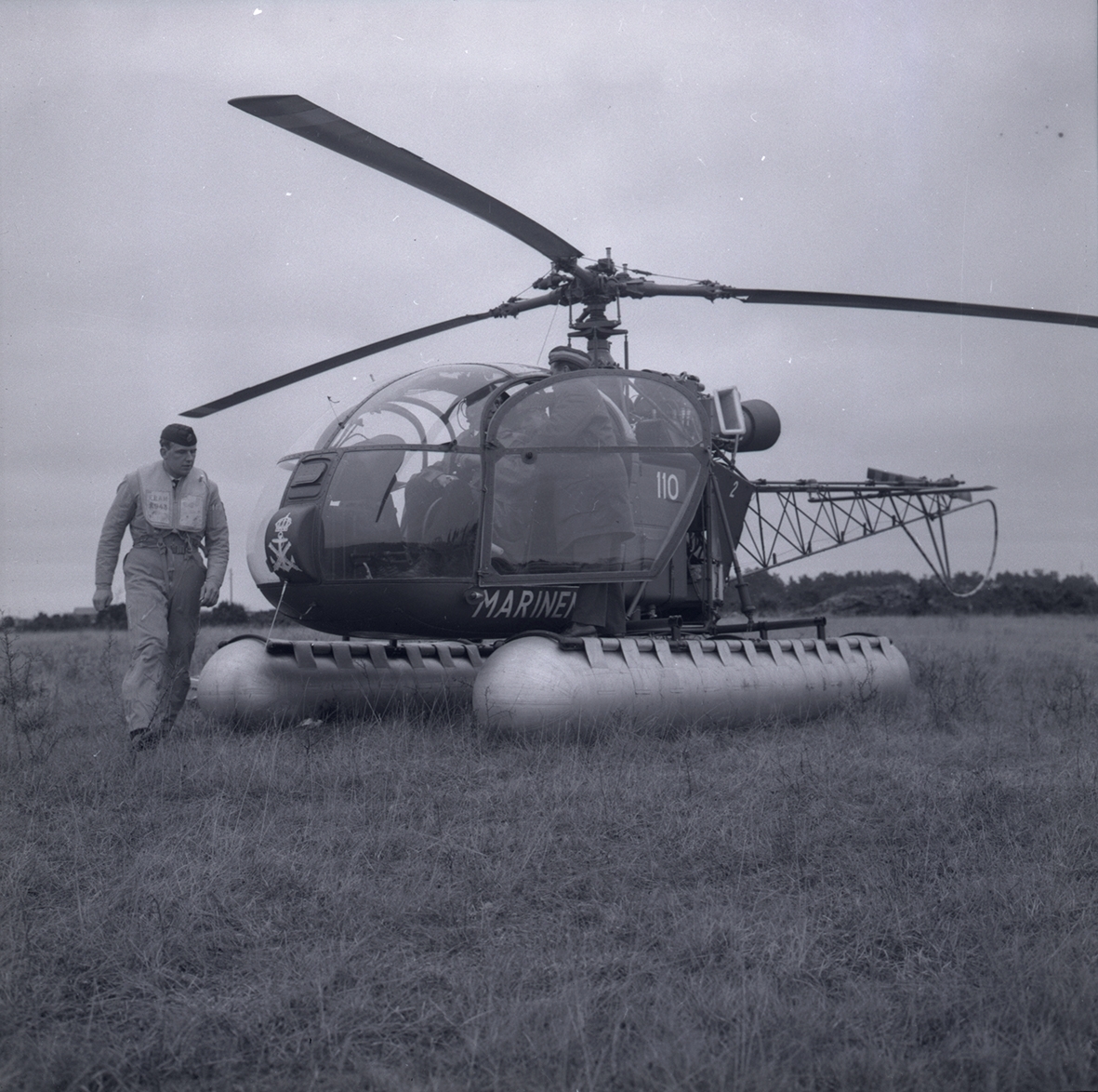 Bild från militärövningen Ölandskriget. Pilot vid helikopter och passagerare.