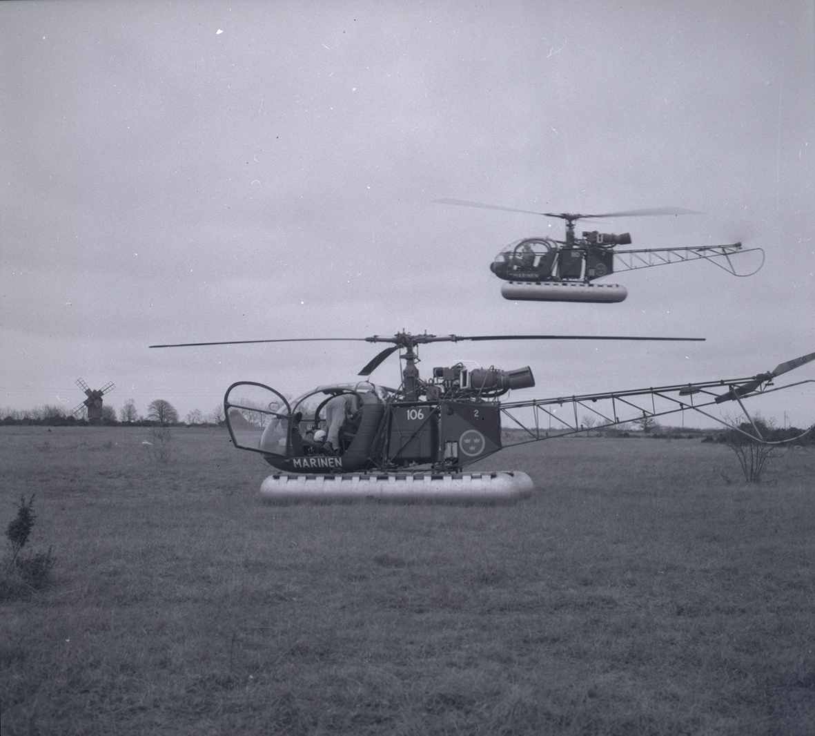 Bild från militärövningen Ölandskriget. Ett par helikoptrar ifrån marinen.