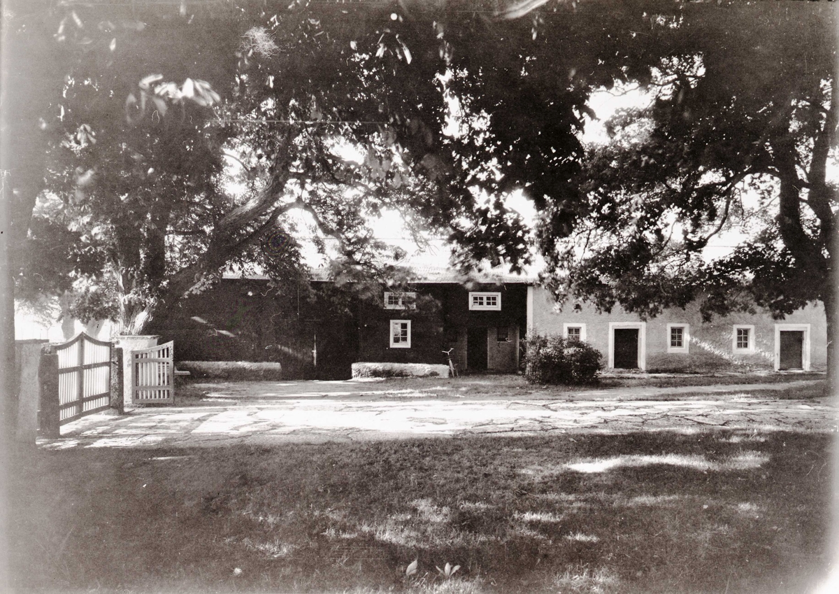 Norra sidan av mangården till höger bodlänga av kalksten.