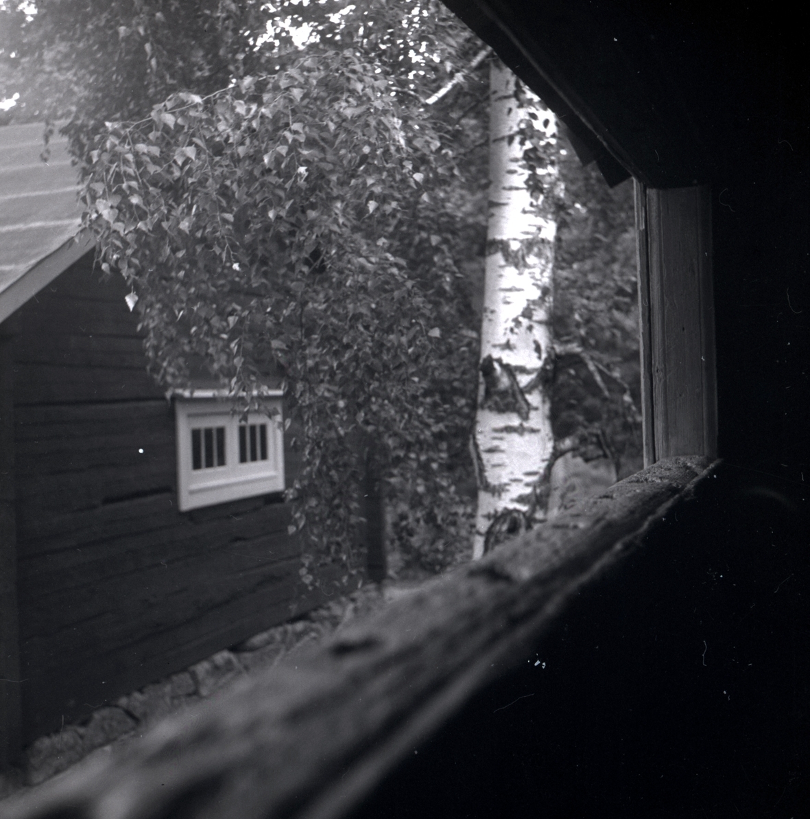 Utsikt ifrån loftboden till mangårdsbyggnaden på hembygdsgården i Kristdala s:n.