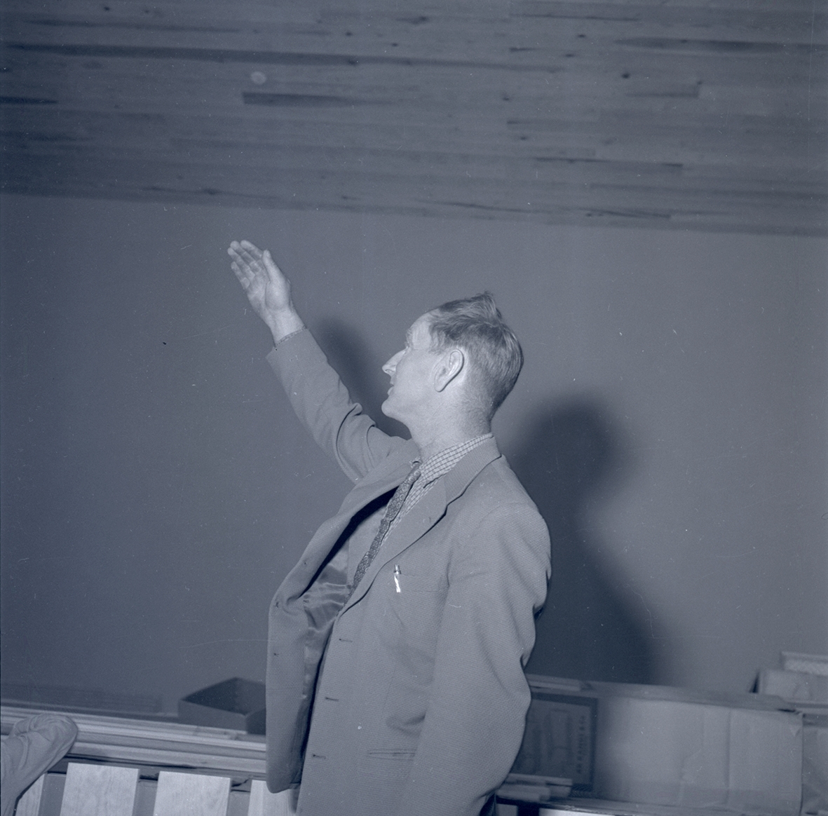 Invigning av hembygdsgården i Köpingsvik. En man som håller upp en arm.