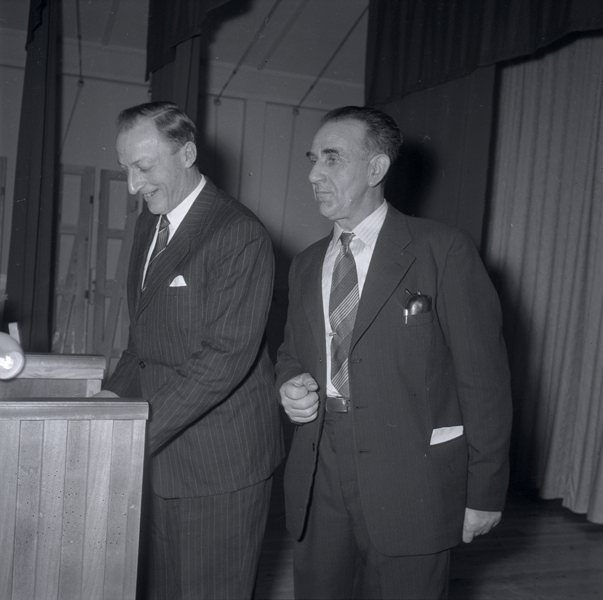 Invigning av hembygdsgården i Köpingsvik. Två män i kostym.