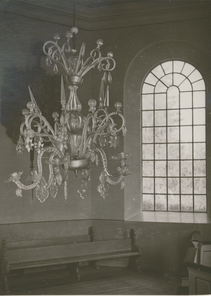 Ljuskrona i Blackstads kyrka, byggd i slutet av 1780-talet.