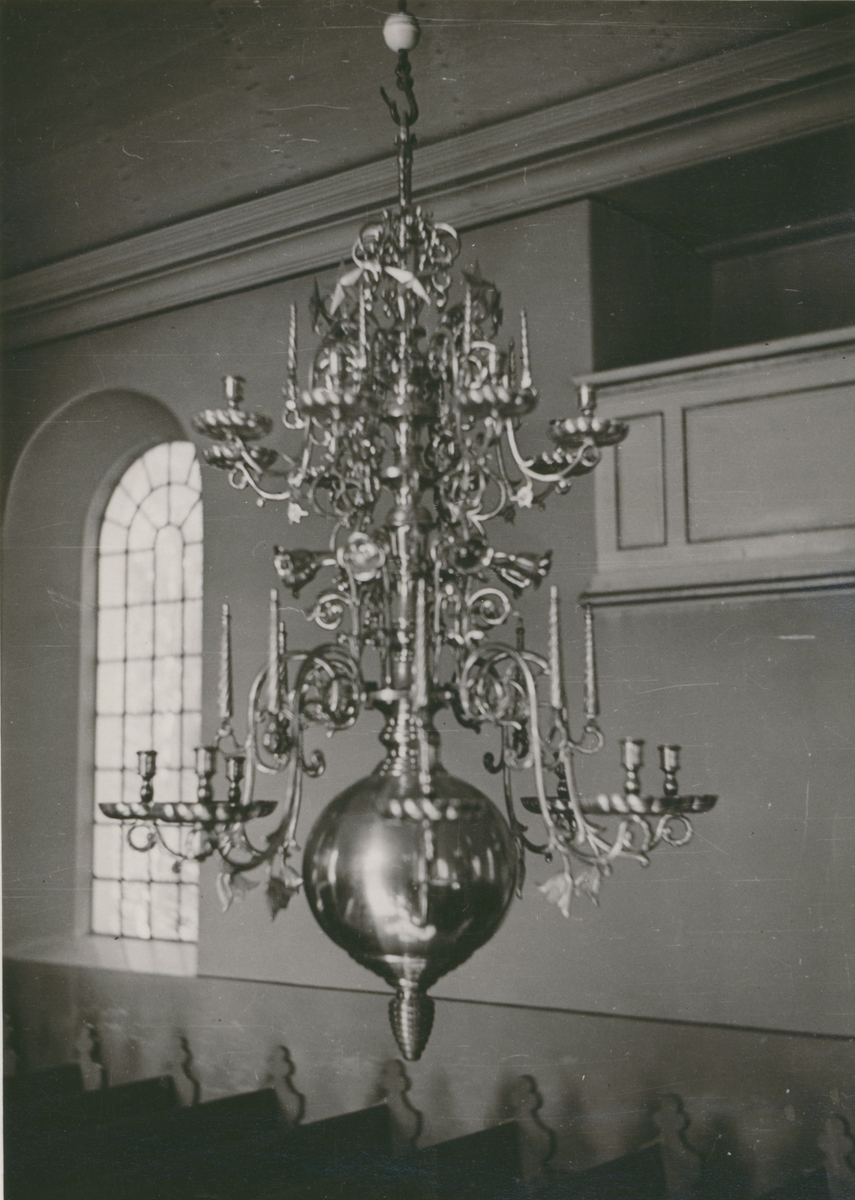 Ljuskrona i Blackstads kyrka, byggd i slutet av 1780-talet.