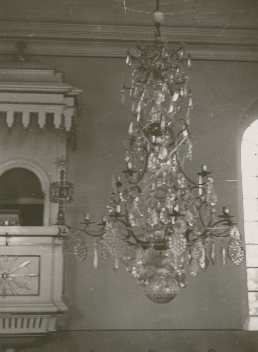 Ljuskrona i Blackstads kyrka, byggd i slutet av 1780-talet.