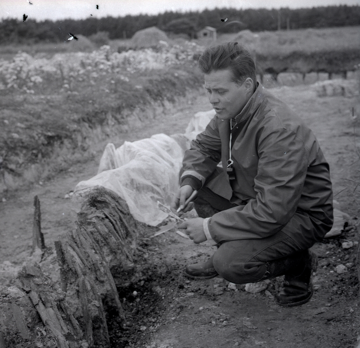 Ulf Erik Hagberg vid Skedemosse. Vid en arkeologisk utgrävning.