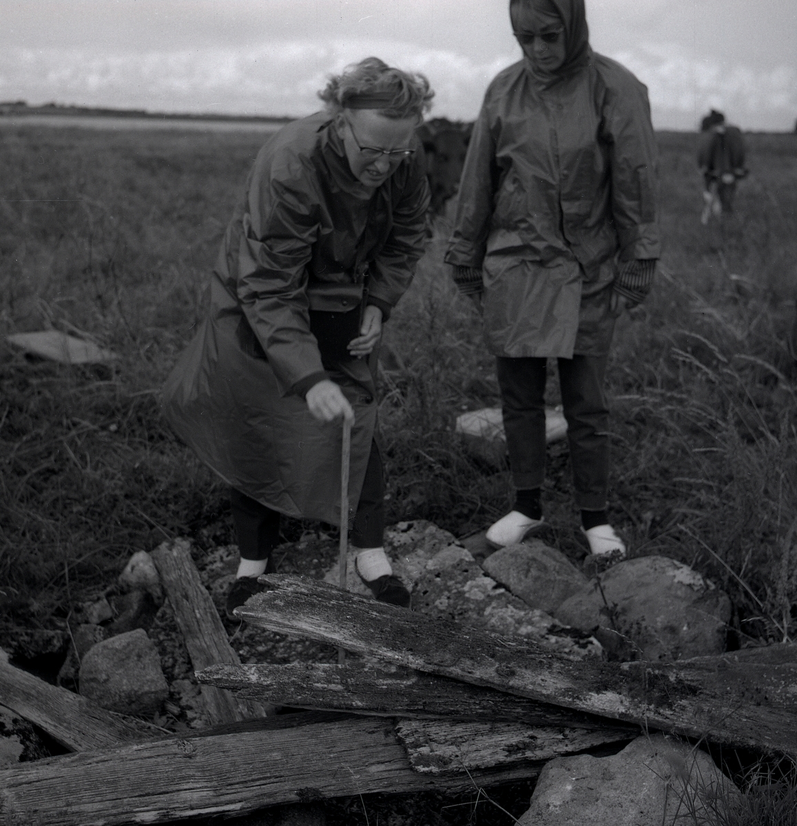 Dr. Ragnhild Boström i Kåreholm vid en arkeologisk undersökning, juli 1962.