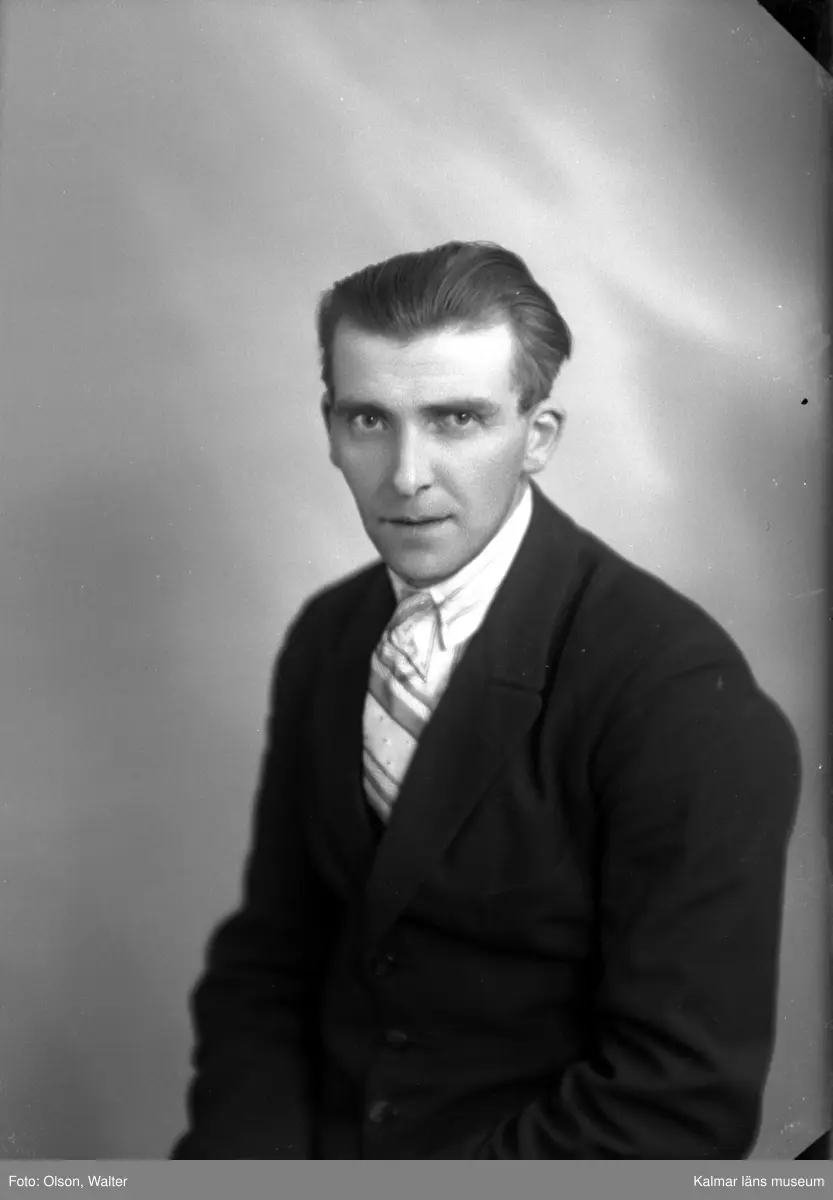 Ateljébild på en man i kostym. Beställare till bilden: Oskar Karlsson ifrån Kalmar konservfabrik i Kalmar.
