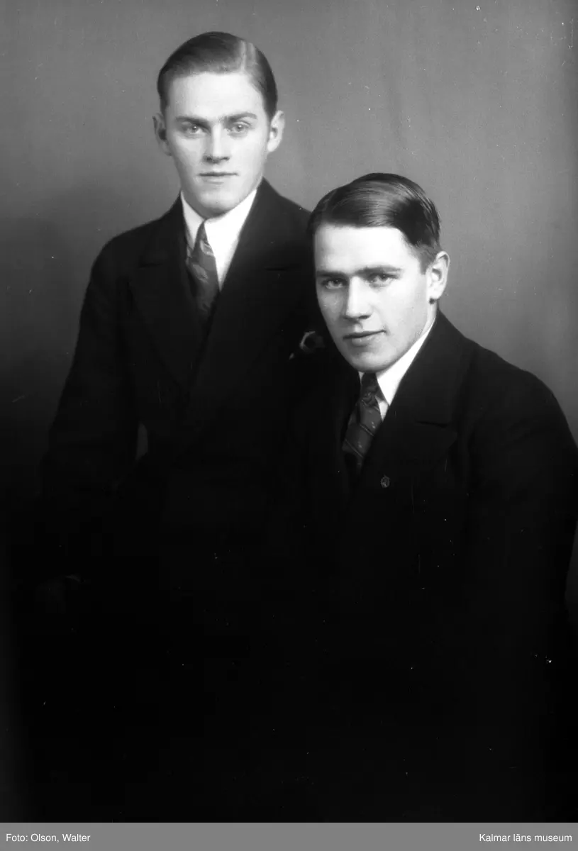 Ateljébild på två män i rock och slips. Enligt Walter Olsons journal är bilden beställd av Sven Sohlberg.