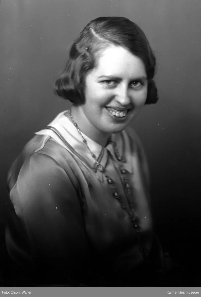 Ateljébild på en kvinna i halsband och klänning. Enligt Walter Olsons journal är bilden beställd av fröken Martha Larsson.
