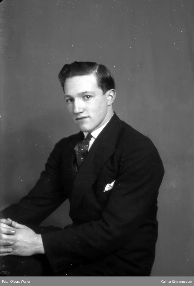 Ateljébild på en man i kostym. Enligt Walter Olsons journal är bilden beställd av herr Birger Wahlström.
