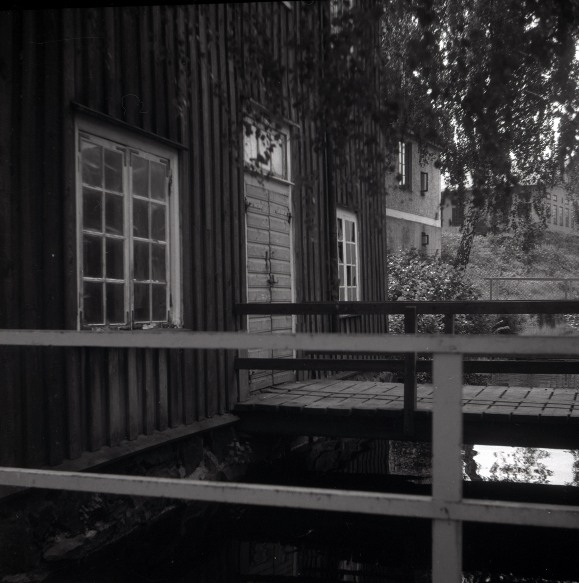 Gamla tråddrageriet industribyggnad med gångbro och dammbyggnad i Gladhammar socken.