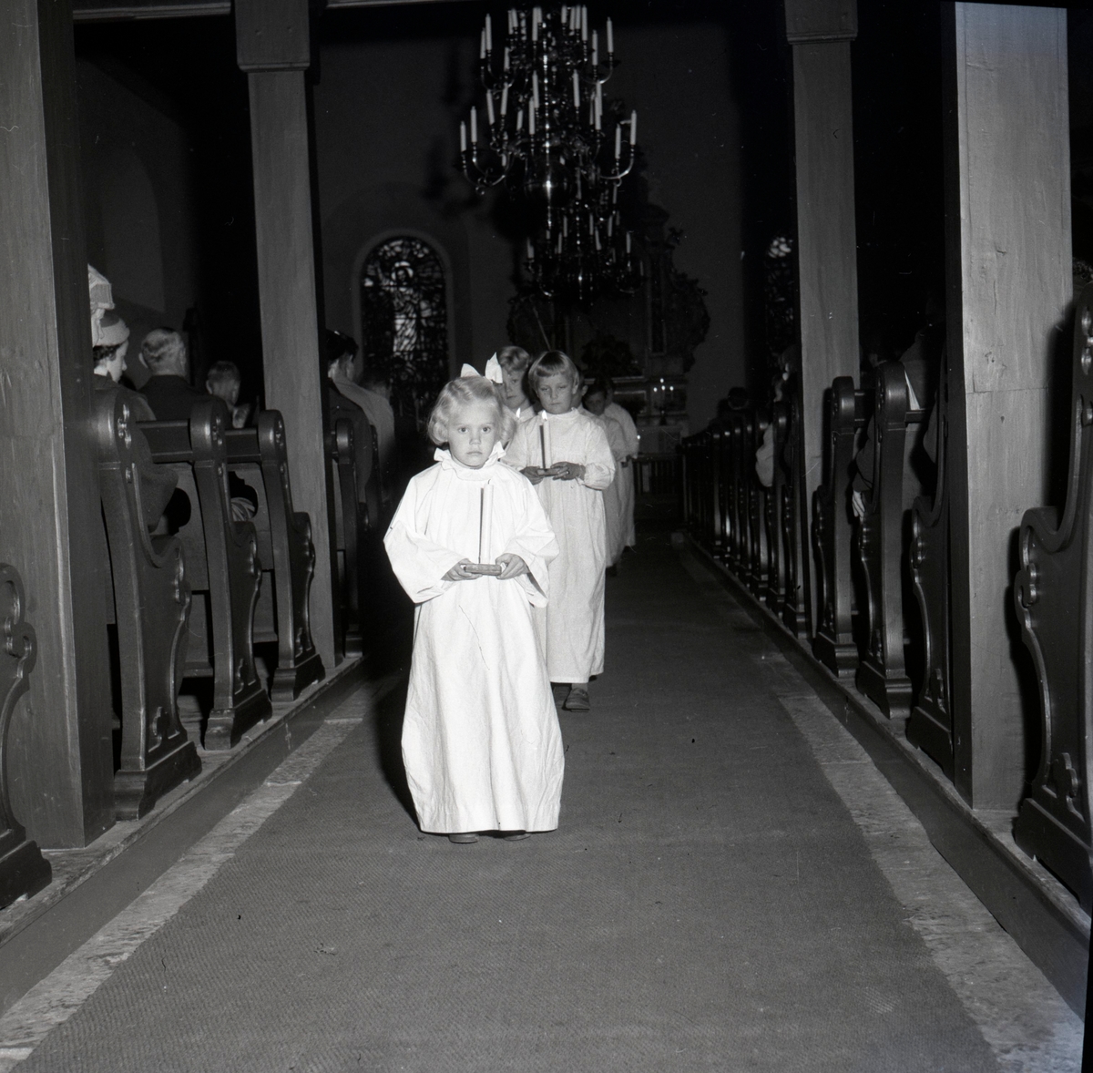 En procession i samband med att kyrkvaktmästare Gustav Svensson avgick den 1 november 1958.