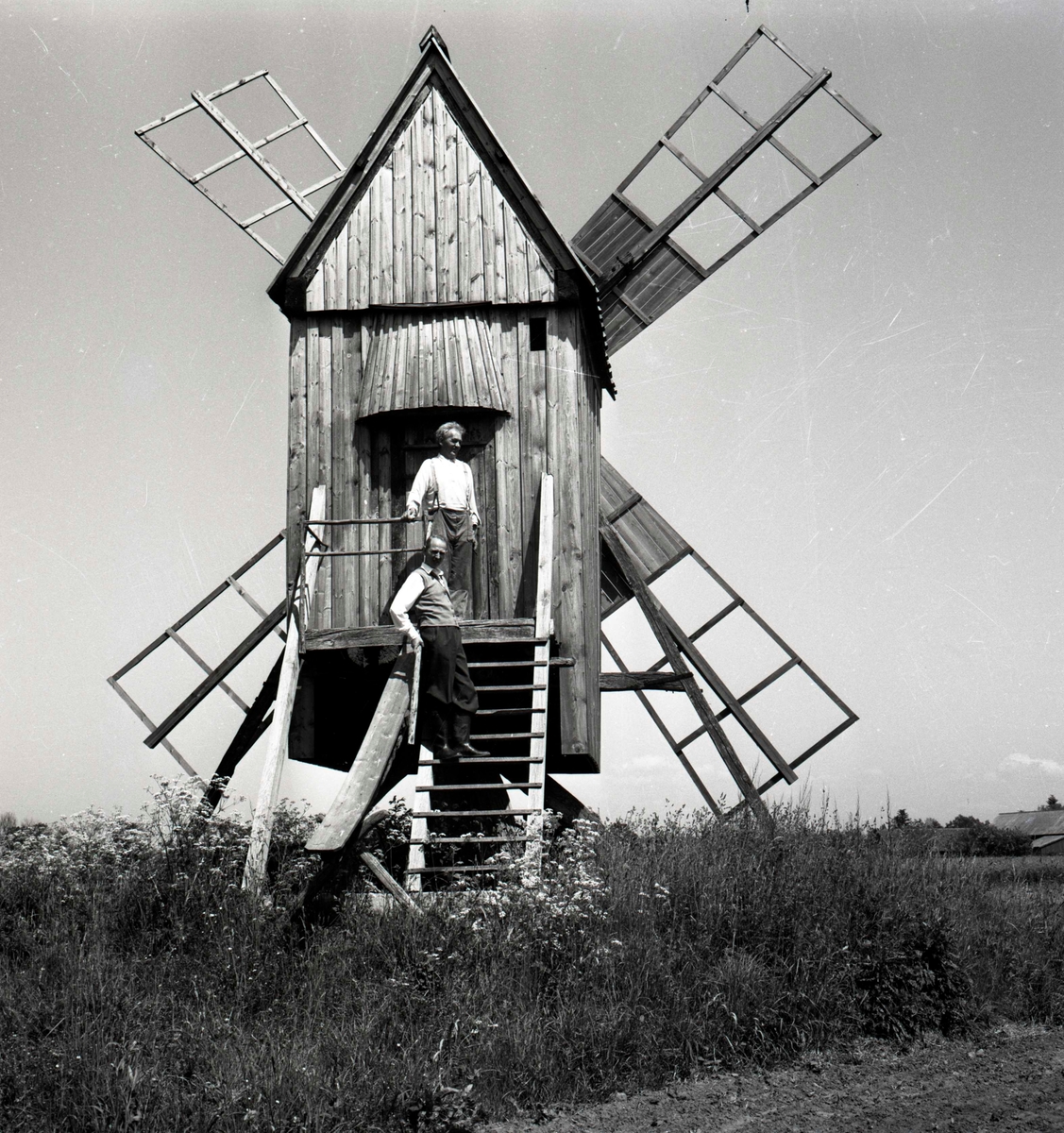 Kyrkoherde Karl Bertil Lundgren och Ernst Hillner i Gillsättra vid en kvarn.