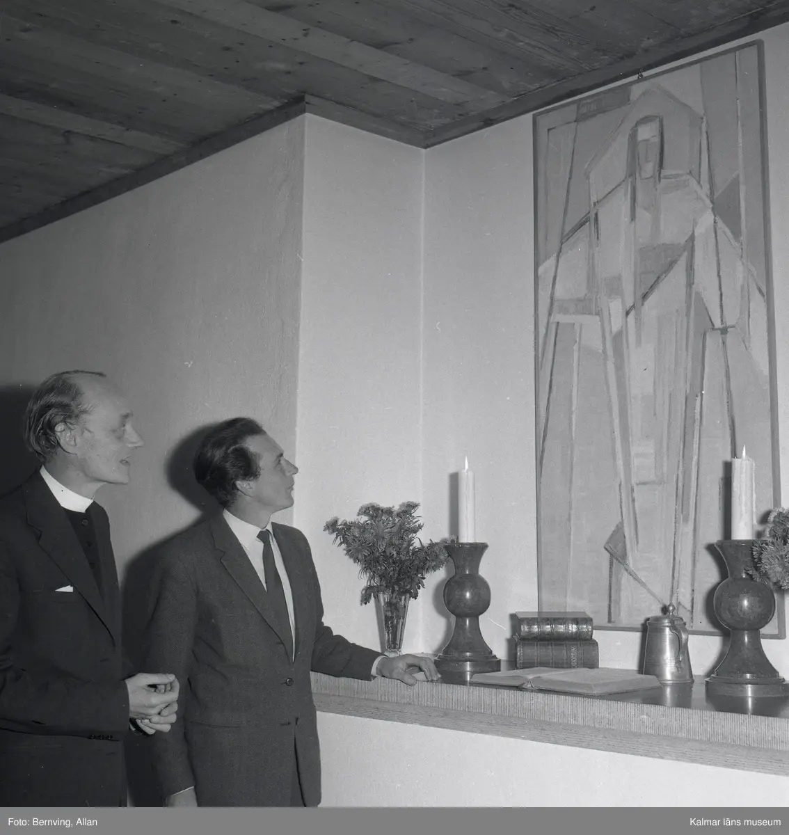 Överlämnadet av en tavla den 30/10 1958 i Föra kyrka, kyrkoherde Nils Sjöstrand till vänster.