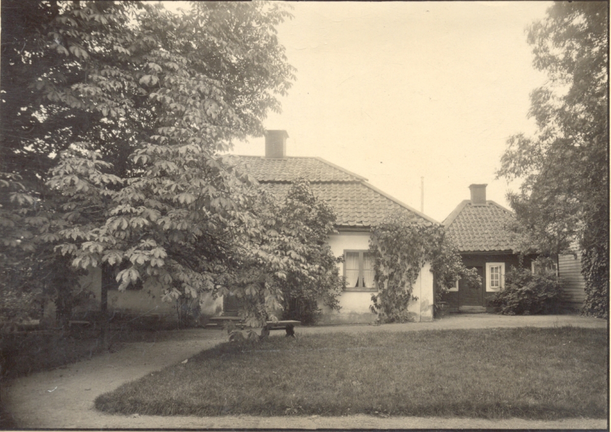 Toverums säteri. Flygel innehållande bostäder i putsreveterat timmer. Avträde med korsknutat timmer.
