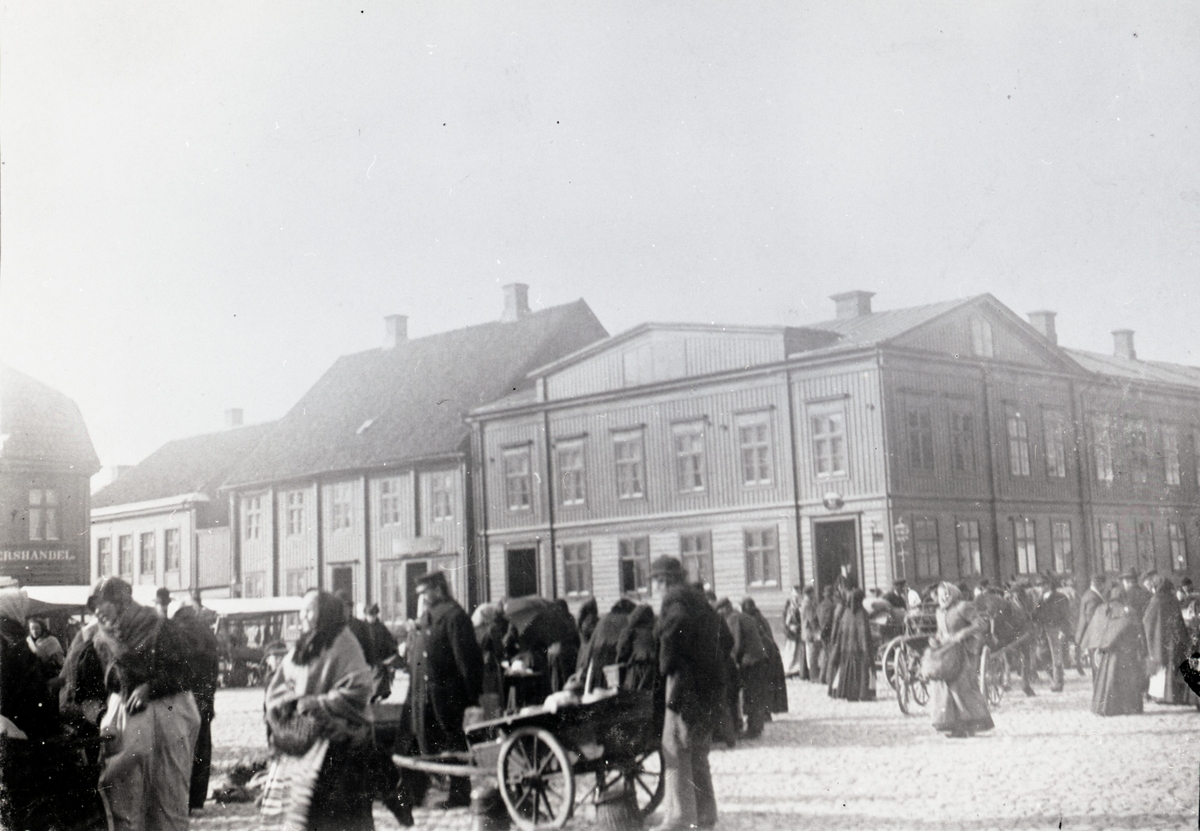 Handel på Stortorget i Kalmar. Bilden tagen från domkyrkan.
