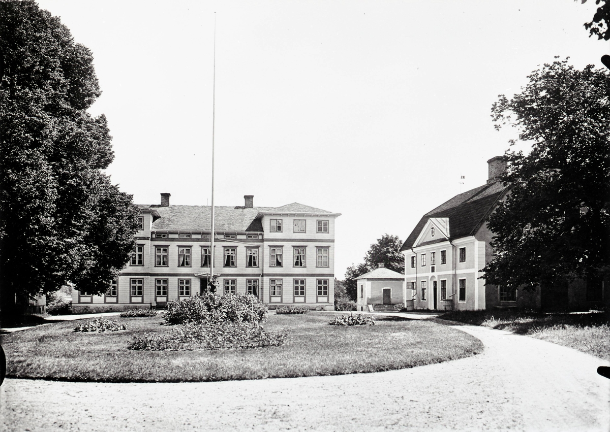Huvudbyggnaden av trä från omkring 1860. Vit med gula lister. Flygel av sten, 1700-talets mitt.