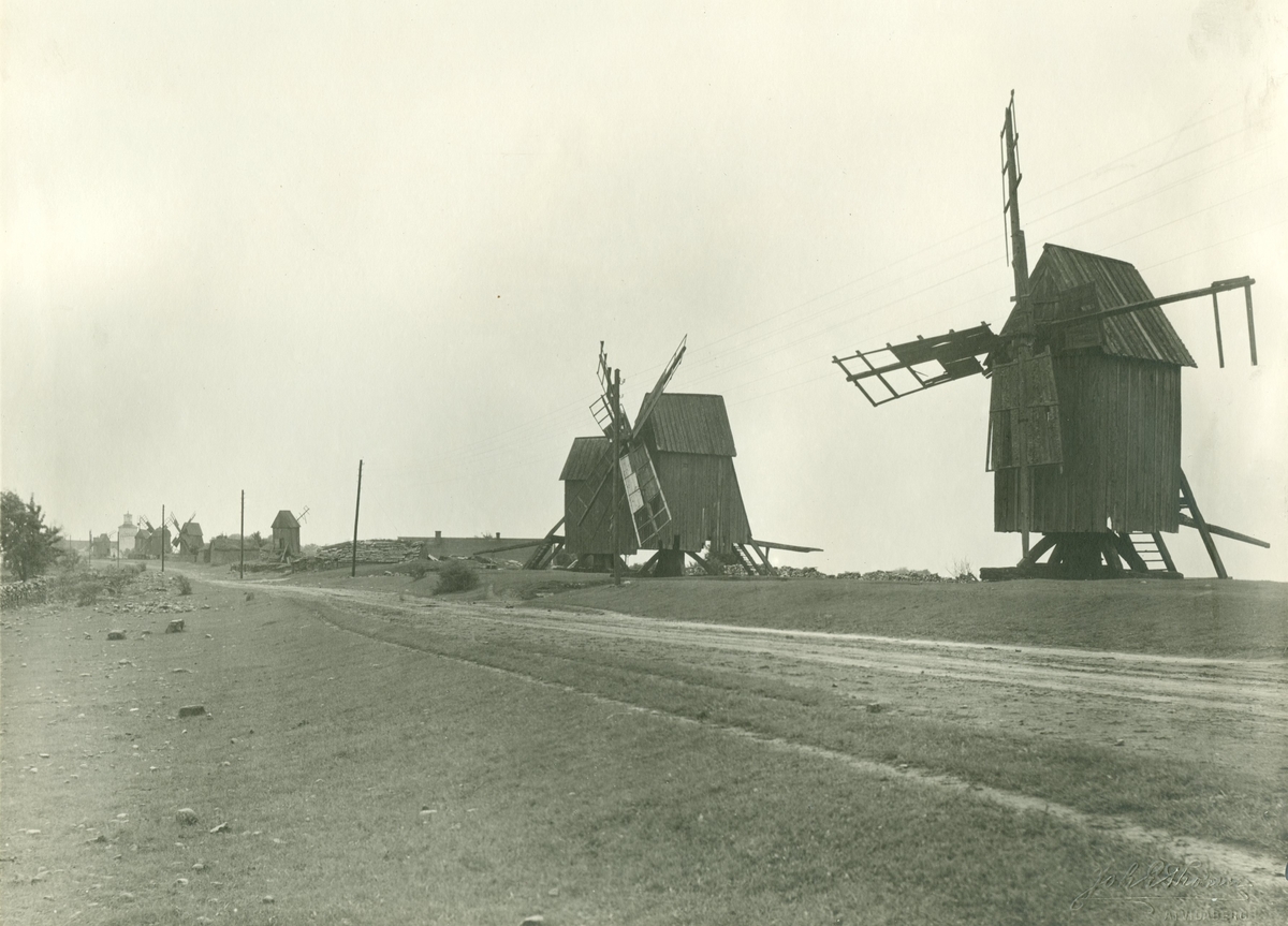 Motiv av en rad med stubbkvarnar i Vickleby.