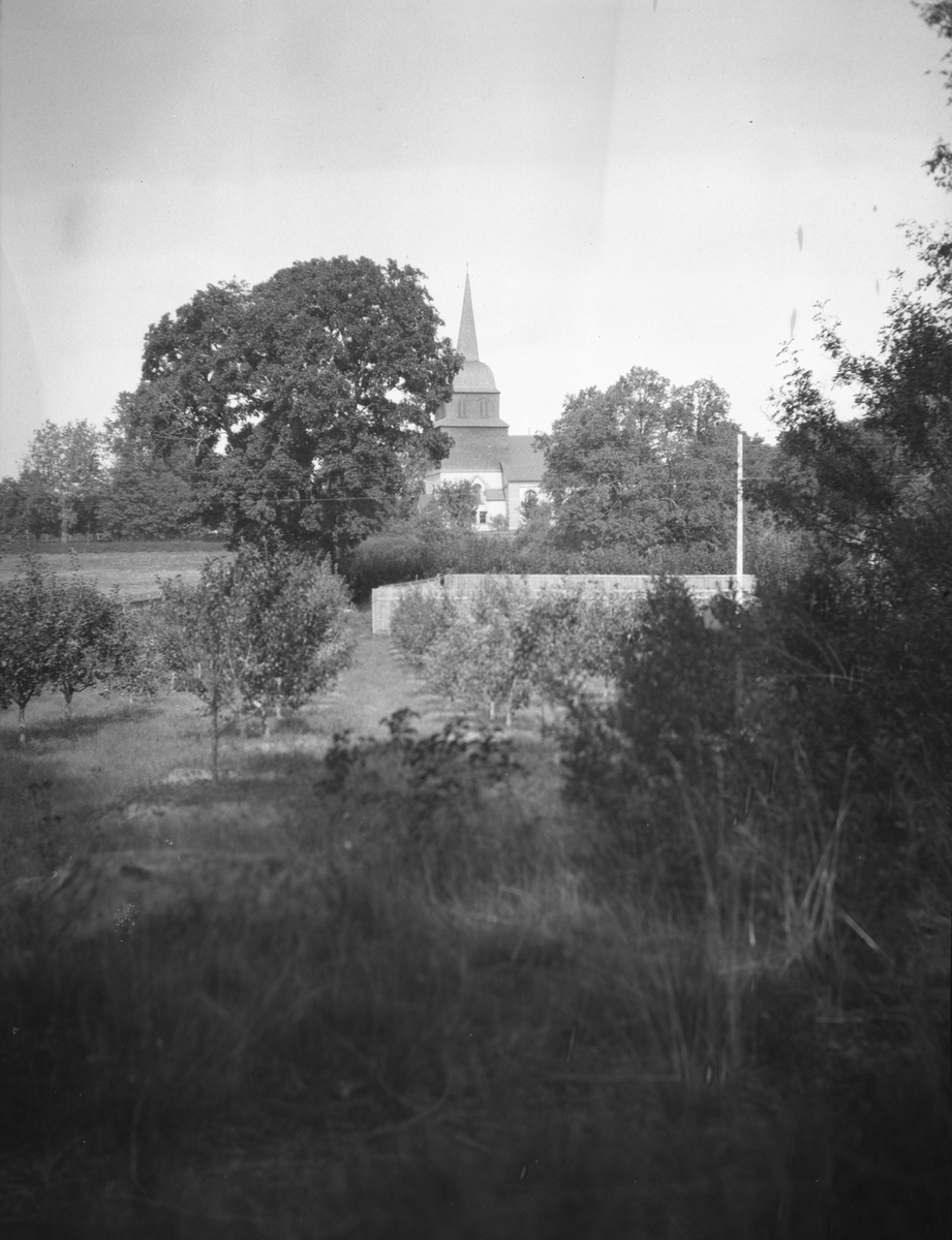 Bild i Tuna trädgård. I bakgrunden syns Tuna kyrka.