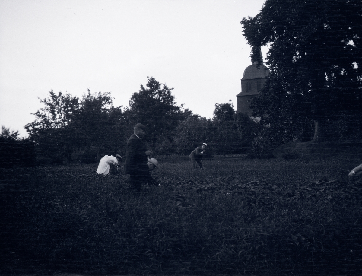 Folk som skördar vid Tuna kyrka.