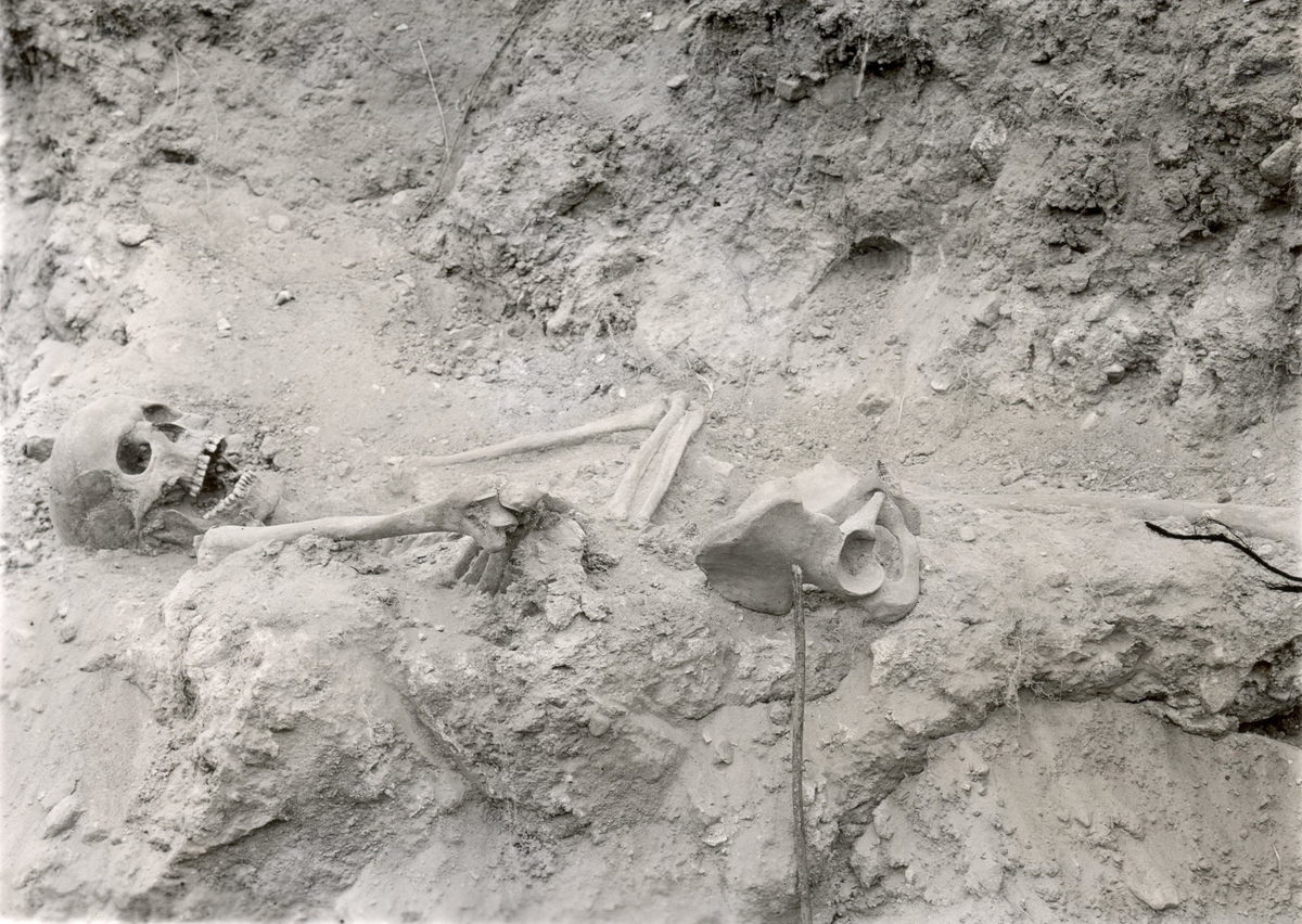 Krigargrav, påträffad nära forna S:t Görans kyrka, vid grundläggningsarbete 1938.