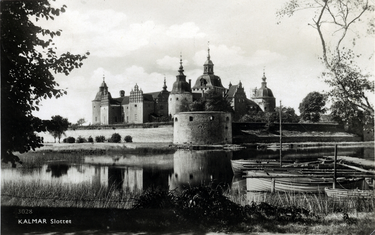 Kalmar slott ifrån Sylvanderparken. Fritidsbåtar till höger.