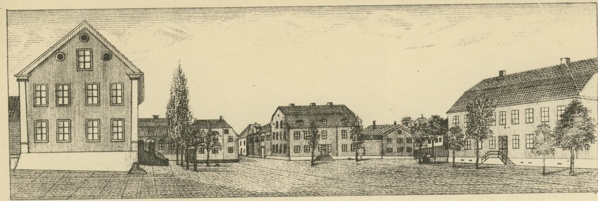 Titel: Larmtorget i Kalmar efter litografi av J P Pettersson.