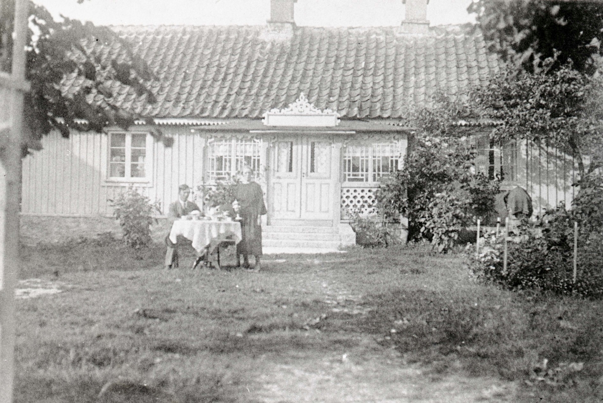 Uno Karlsson och hans hustru Jane framför dåvarande mangårdsbyggnaden på gård.
