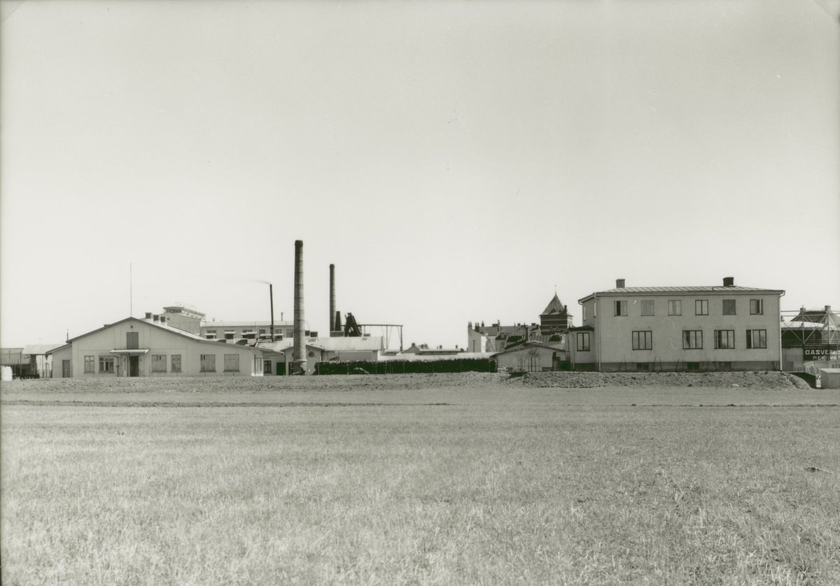 Kalmar Läns Slakterier med gasverksvillan i bakgrunden.