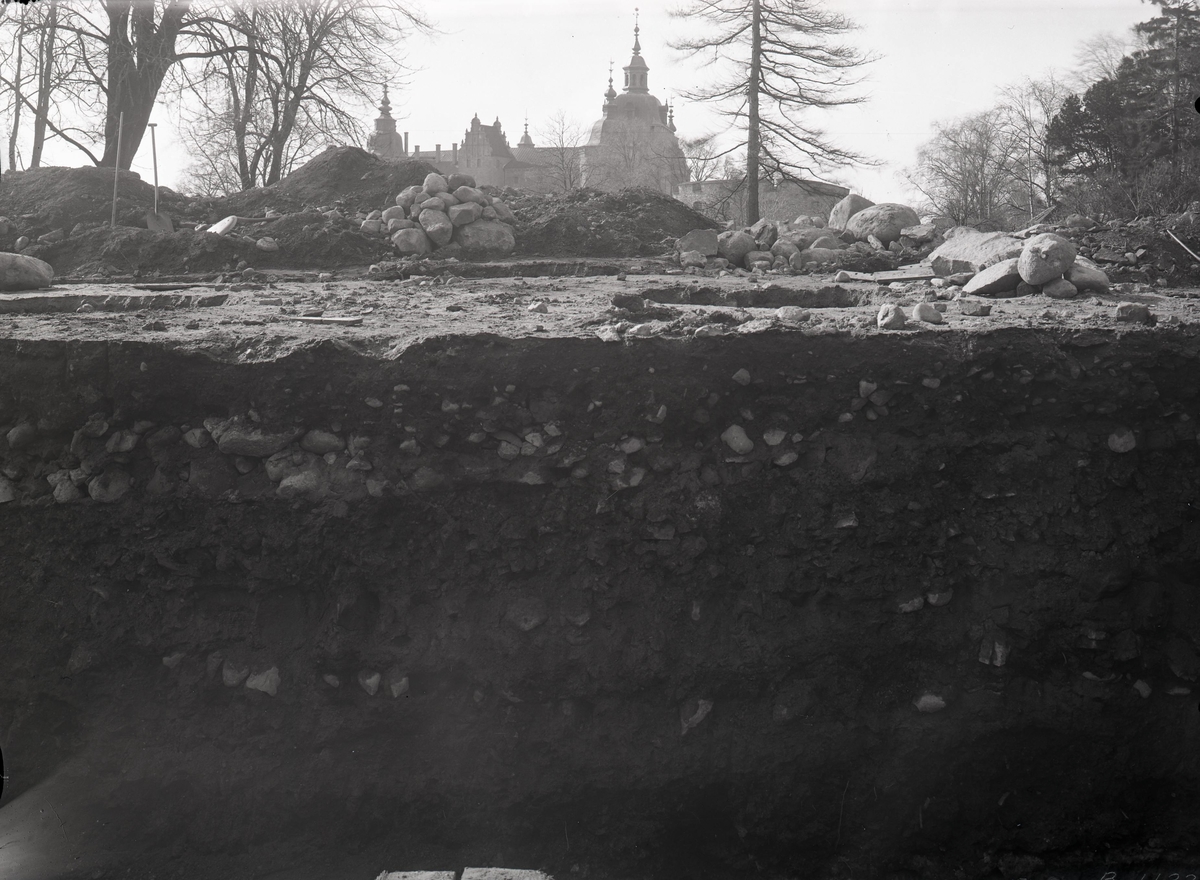 Lagersnitt, detalj till foto T. Grävning på platsen för nya restaurangbyggnaden i Stadsparken.
