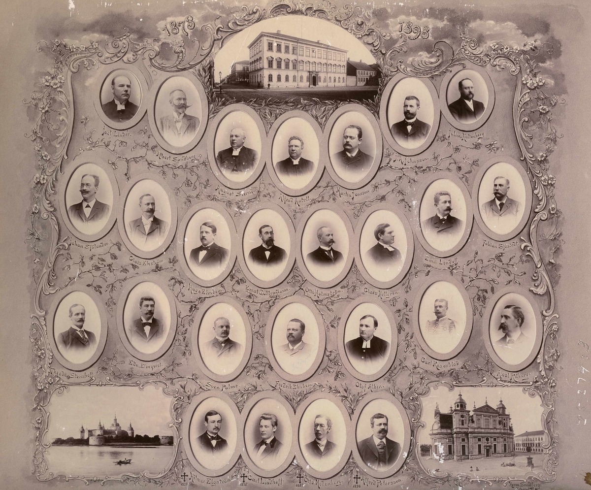 Döda när porträttkartan sammanställdes: Hilmer Elgström död 1873, Carl Lindhoff död 1875, Otto Hedenberg död 1887, Alfred Petersson 1898.