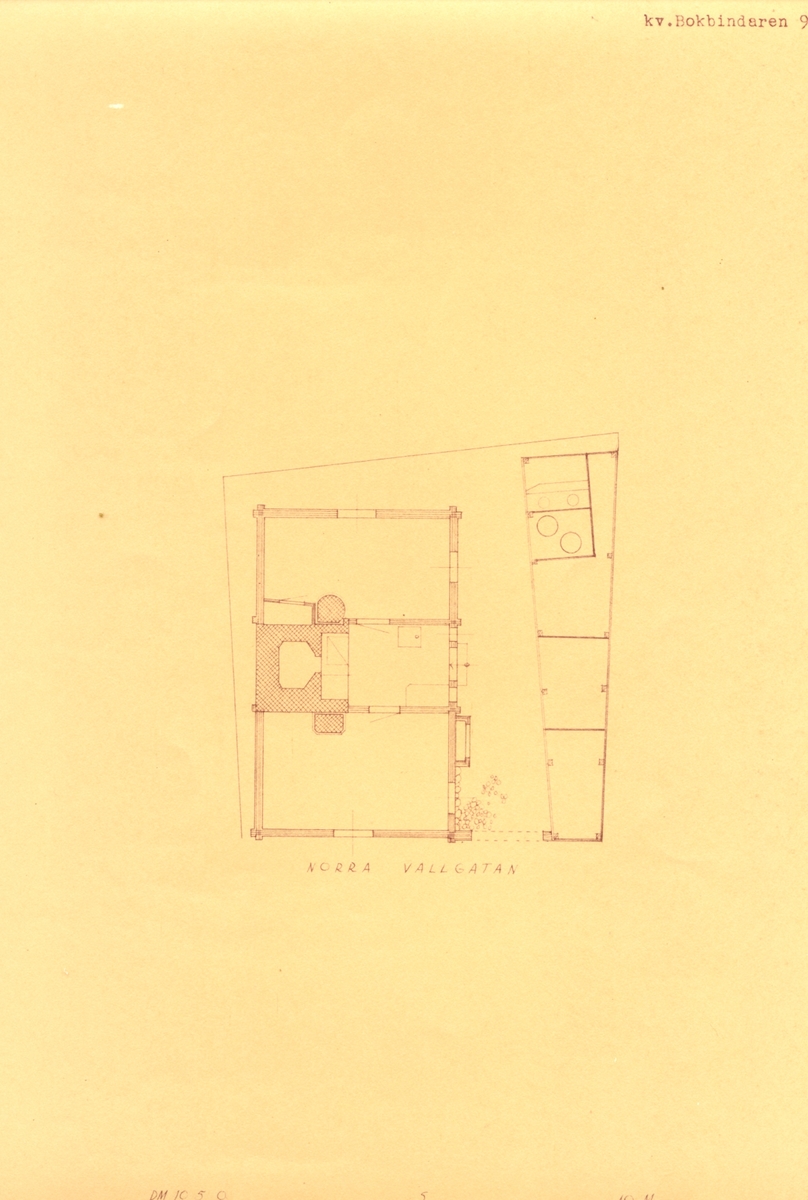 Ritning över hus på Norra Vallgatan 56.
