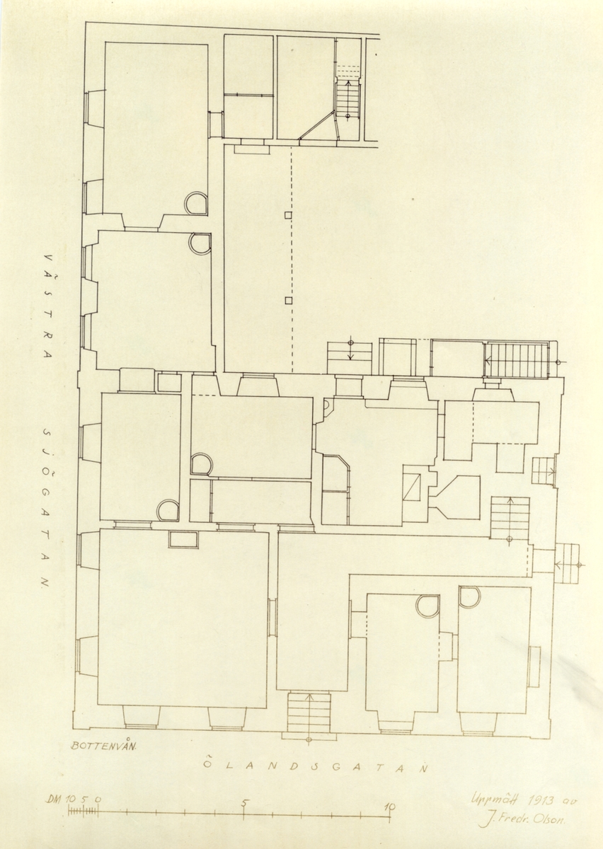 Planritning över bottenvåningen i Dahmska huset.