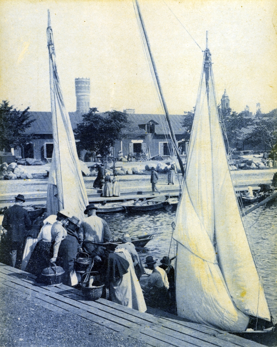 Fiskförsäljning vid kajen i gamla Ölandshamnen. Ölandsfiskarna kom in och sålde direkt från båtarna.