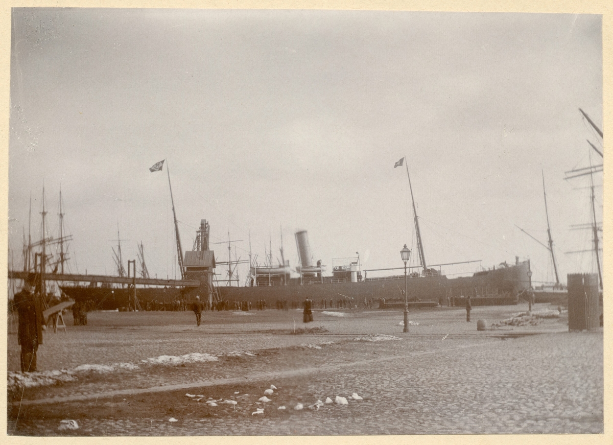 Ett fartyg lossar vid den nybyggda elevatorn.