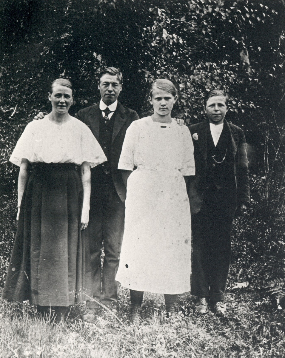 Emil Karlsson tillsammans med Frida Pettersson, Ruth Fredriksson och Nora Fredriksson.